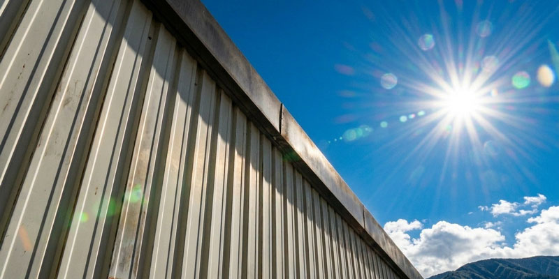 プレハブの壁や屋根は、主に厚さ0.5〜0.6mm程度の鋼板でできています。金属は熱を伝えやすい素材で、夏の日差しを受けた屋根の表面温度は、金属屋根で70〜80℃に達することがあります。