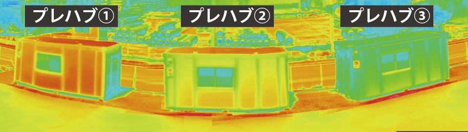 プレハブ②(グレー)では、最大7.9℃の温度差があり、プレハブ③(白)では、最大18.8℃もの温度差が確認できました。