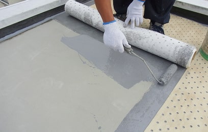 ウレタン防水は下地の凹凸に追従しやすく施工期間が他の放水工法より短い傾向にあるのが特徴です。(耐用年数の目安は10〜12年)